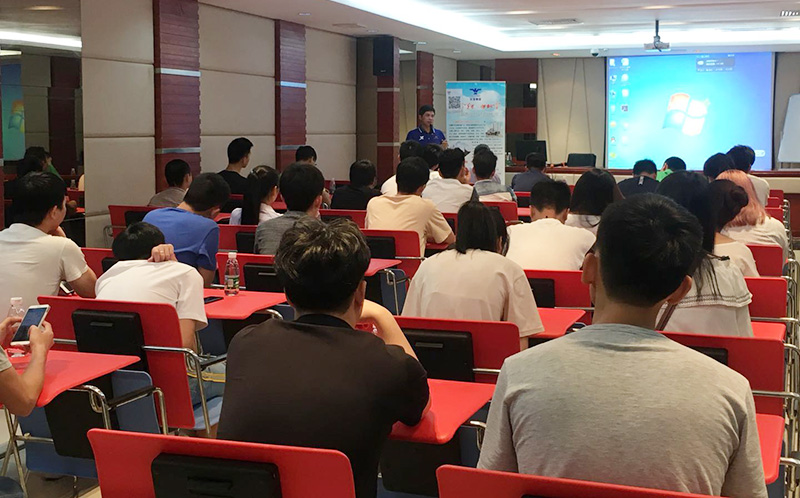 最后一站,學(xué)生們來到了集團(tuán)總部,石獅豪寶染織副總經(jīng)理吳灶生親自接待,在集團(tuán)多功能廳向?qū)W生介紹華寶集團(tuán)的基本情況,并向?qū)W生分享求職方向和經(jīng)驗(yàn),表達(dá)了公司人才儲(chǔ)備需求,現(xiàn)場反響熱烈。