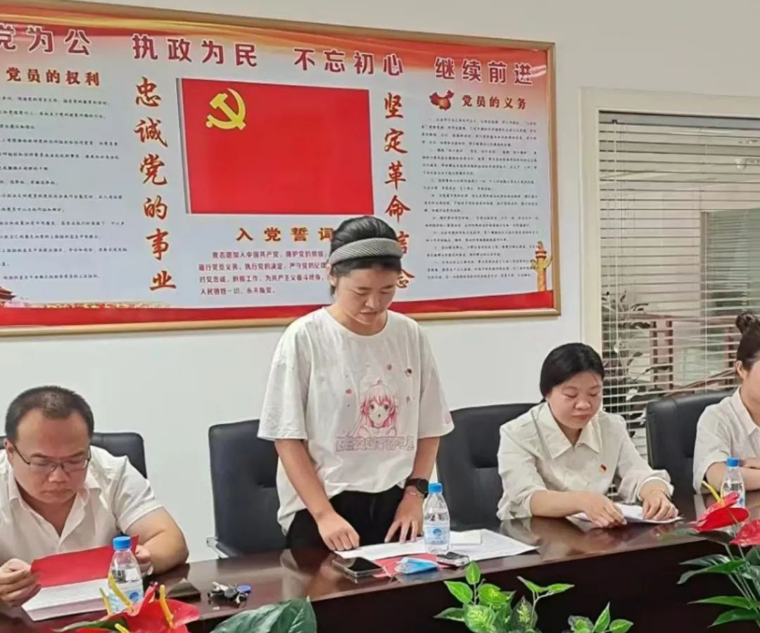 表彰先進(jìn) 樹立標(biāo)桿 黨支部表彰2022年度表現(xiàn)優(yōu)秀的黨員,分別是劉麗勸、鐘鳴、周春燕、吳秋媛,為他們頒發(fā)榮譽(yù)證書和獎金。希望他們充分發(fā)揮優(yōu)秀黨員先鋒模范帶頭作用,激勵全體黨員奮發(fā)向上,積極進(jìn)取,增強(qiáng)黨組織活動力、凝聚力和戰(zhàn)斗力。 預(yù)備黨員和入黨積極分子自我介紹 黨員是黨的肌體的細(xì)胞和黨的活動的主體。發(fā)展黨員有利于不斷壯大黨員隊伍,改善黨員隊伍結(jié)構(gòu),提高黨員隊伍素質(zhì),保持黨員隊伍生機(jī)活力,擔(dān)負(fù)起新的歷史使命。預(yù)備黨員陳貞、劉藝藝、張云鳳、蔡阿響、入黨積極分子董文武向在場黨員介紹自己的入黨初心和個人情況。