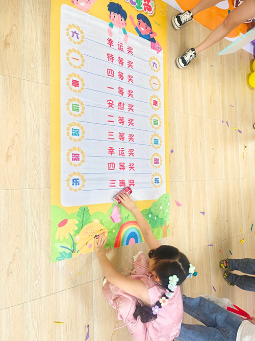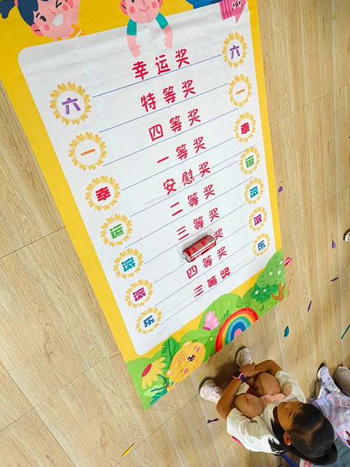 第三項(xiàng)游戲是滾滾樂,滾動(dòng)的可樂滾到哪里,就獲得對(duì)應(yīng)的獎(jiǎng)品。小朋友通過這三個(gè)小游戲每個(gè)人的手提袋都收獲滿滿。