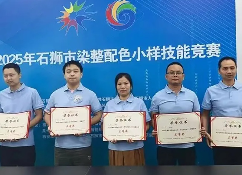 5月25日,2025年石獅市染整配色小樣(紡織染色工)技能競(jìng)賽在福建技師學(xué)院寶蓋校區(qū)舉行。該競(jìng)賽是石獅紡織服裝行業(yè)的常態(tài)賽事,也是2025年泉州市科技活動(dòng)周暨石獅市科技、人才活動(dòng)周和全國(guó)科技工作者日活動(dòng)的系列活動(dòng)之一,著重考驗(yàn)參賽選手的配色及調(diào)色能力。 比賽項(xiàng)目分為A、B兩項(xiàng),根據(jù)參賽者實(shí)際情況自由選擇A項(xiàng)或B項(xiàng)。其中,A項(xiàng)為長(zhǎng)車軋染工藝及操作、B項(xiàng)為浸染工藝及操作。經(jīng)過(guò)兩輪激烈角逐,最終我司員工邱尚東榮獲三等獎(jiǎng)。